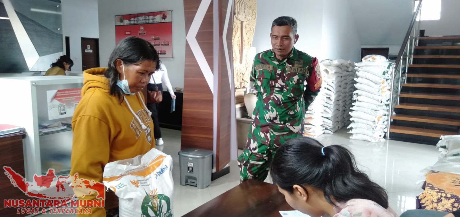 Gianyar,NUSANTARAMURNI.com– Sukawati, Rabu (16/7/2025) — Dalam rangka memastikan kelancaran dan ketepatan sasaran program bantuan sosial dari pemerintah pusat, Babinsa Desa Singapadu Kaler, Koramil 1616-05/Sukawati, Sertu I Made Gede Yusa, bersama Bhabinkamtibmas Aiptu I Gusti Rauh serta staf Desa Singapadu Kaler, melaksanakan pemantauan dan pengamanan kegiatan penyaluran Cadangan Beras Pemerintah (CBP) dari Kementerian Sosial Republik Indonesia.