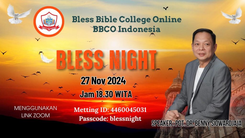 Denpasar,NusantaraMurni.com- 02/12/2024-Malam menjelang Wisuda Angkatan ke-4 Bless Bible College Online (BBCO) Indonesia, yaitu tepatnya di hari Rabu, 27 Nopember 2024, pukul 18.30 Wita diadakan acara Bless Night semacam Kebaktian Kebangunan Rohani khusus bagi para mahasiswa beserta keluarga pendamping yang akan di wisuda esok harinya, para dosen dan tamu undangan. Dengan pembicara tunggal dari kota Jakarta yaitu Pdt. DR. Benny Siowardjaja, seorang Hamba Tuhan yang juga seorang pengusaha sekaligus Dosen di BBCO Indonesia.