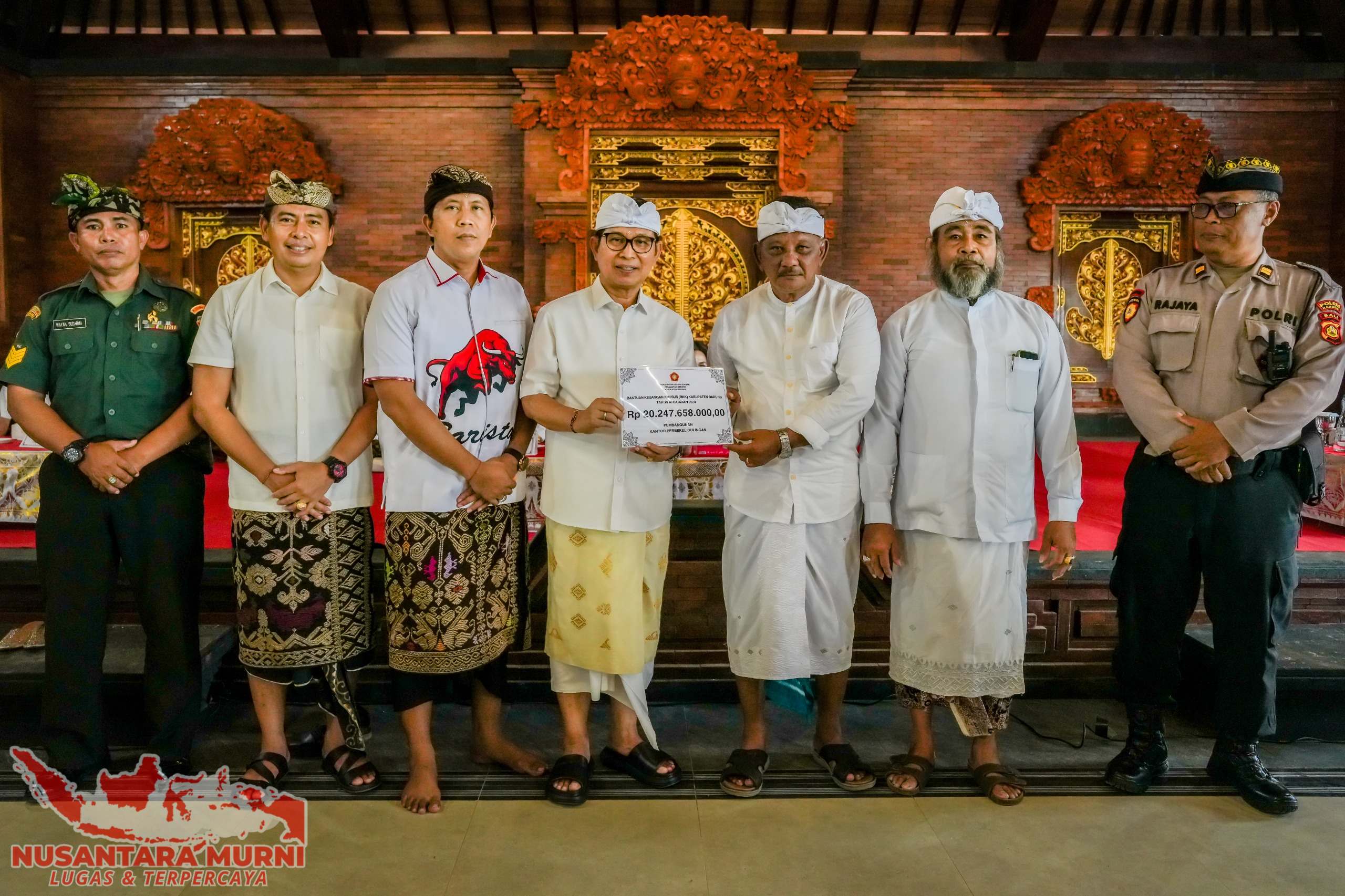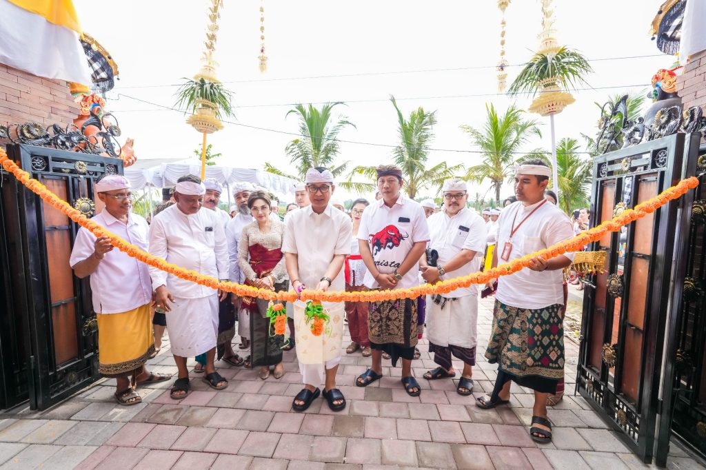 Badung,NUSANTARAMURNI.com-Bupati Badung I Wayan Adi Arnawa secara resmi meresmikan Gedung Kantor Perbekel Gulingan, Kecamatan Mengwi, Jumat (18/4). Peresmian yang dirangkaikan dengan Karya Ngenteg Linggih Wraspati Kalpa dan Melaspas tersebut ditandai dengan pemotongan pita serta penandatanganan prasasti. Pembangunan kantor ini didanai melalui Bantuan Keuangan Khusus (BKK) Kabupaten Badung Tahun Anggaran 2024 tentang Pembangunan Kantor Perbekel Gulingan dengan anggaran Rp 20 miliar lebih.