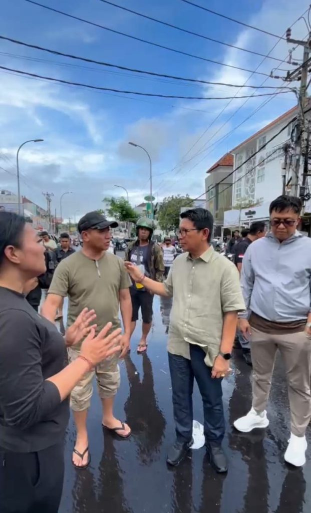 BADUNG,NUSANTARAMURNI.com-Bupati Badung I Wayan Adi Arnawa didampingi Plt. Kepala Dinas PUPR Kabupaten Badung serta Lurah Legian, Rabu (10/9), turun langsung meninjau penanganan banjir yang terjadi di kawasan Jalan Dewi Sri, Kuta. Kehadiran Bupati merupakan bentuk keseriusan Pemerintah Kabupaten Badung dalam merespons cepat keluhan masyarakat sekaligus memastikan penanganan teknis di lapangan berjalan dengan baik.