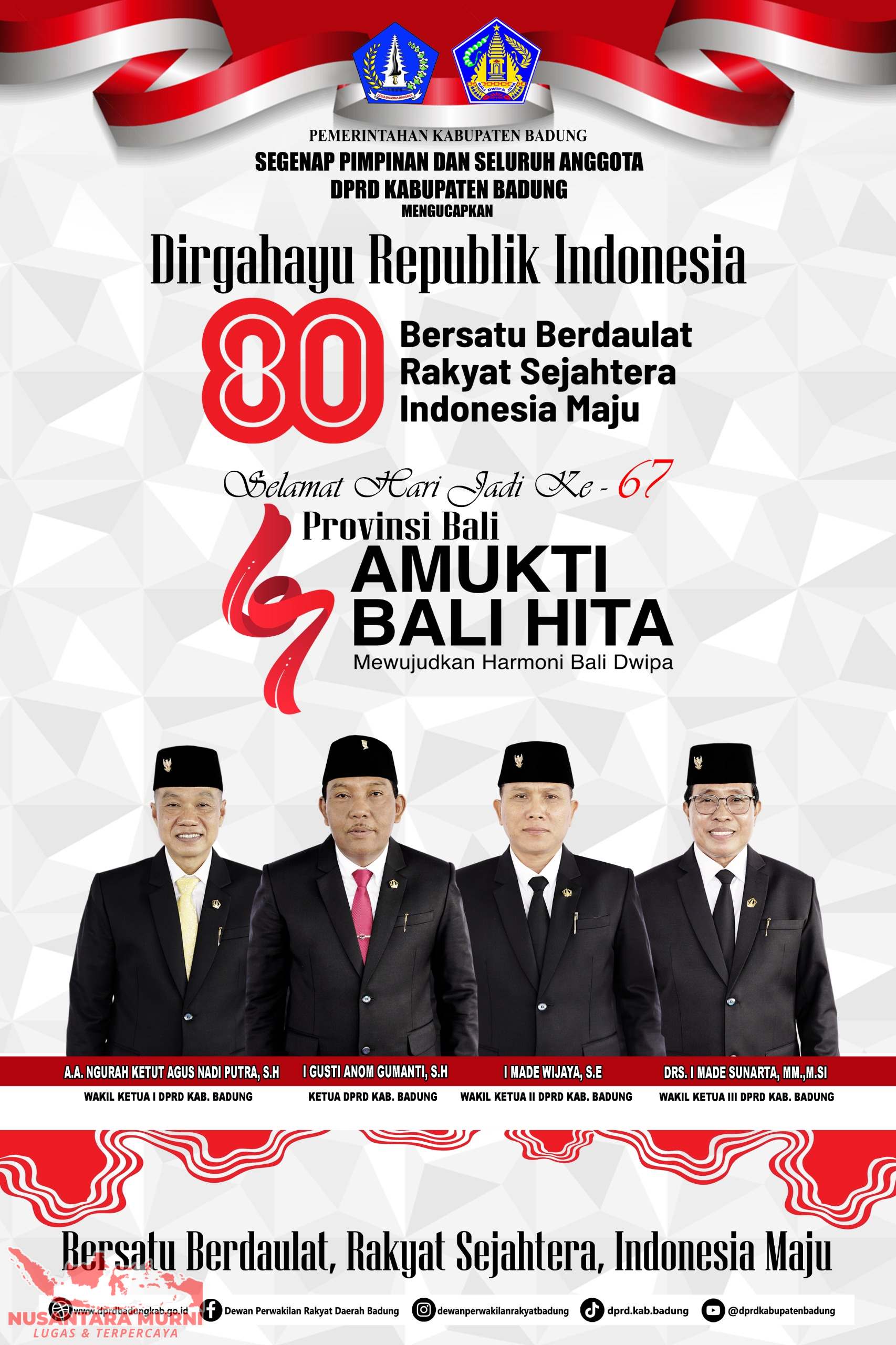 Segenap Pimpinan Dan Seluruh Anggota DPRD Kabupaten Badung Mengucapkan Dirgahayu Republik Indonesia ke-80