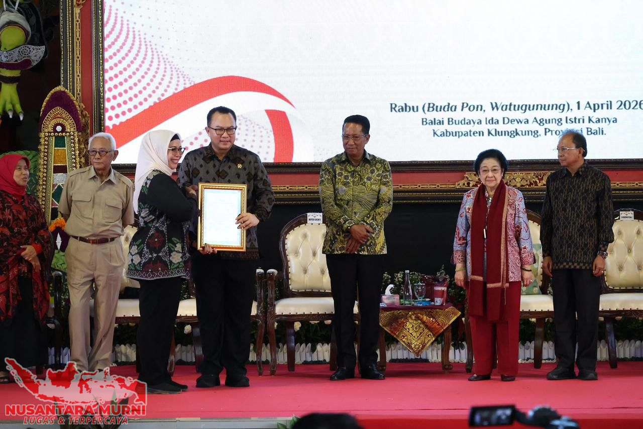 Klungkung,NUSANTARAMURNI.com– Kepala Kantor Wilayah Kementerian Hukum Bali, Eem Nurmanah menerima Sertifikat Hak Kekayaan Intelektual (HKI) berupa Surat Pencatatan Ciptaan yang diserahkan oleh Kepala Badan Riset