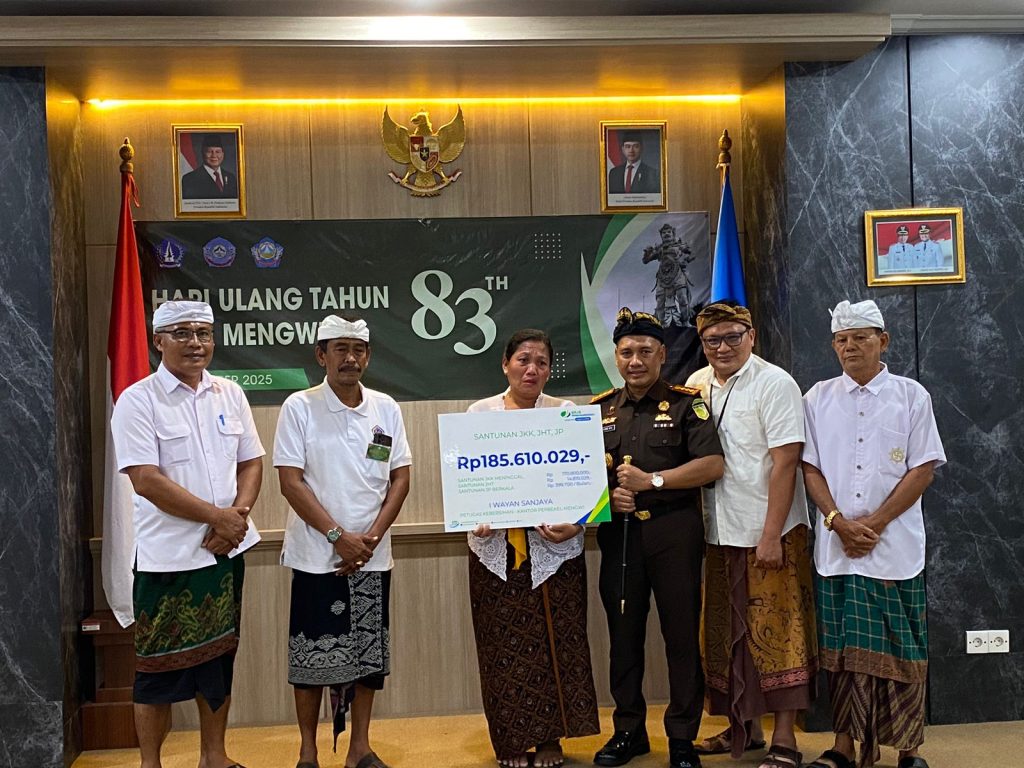 Mengwi,NUSANTARAMURNI.com— Semangat perayaan dan kepedulian sosial berpadu harmonik dalam momen spesial Syukuran Ulang Tahun ke-83 Desa Mengwi, Kecamatan Mengwi, Kabupaten Badung. Acara yang digelar secara khidmat di Aula Kantor Desa Mengwi pada Selasa, 21 Oktober 2025, pukul 13.00 WITA, menjadi panggung bagi penegasan komitmen pemerintah daerah terhadap jaminan sosial bagi para pekerja.