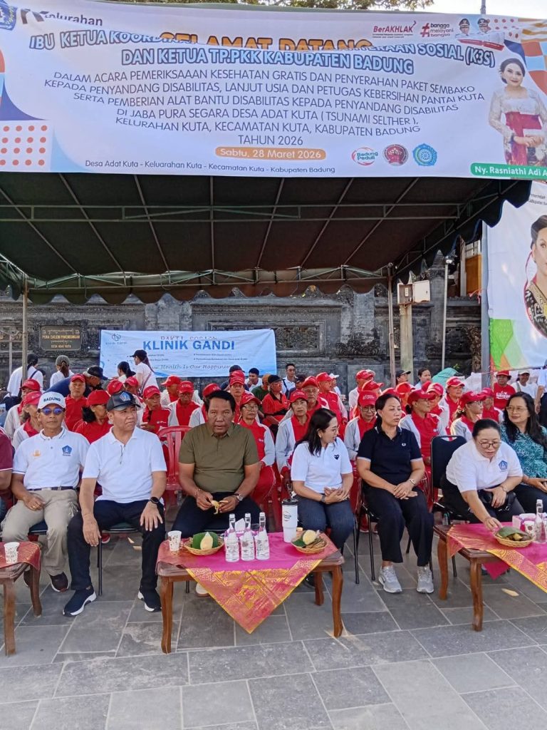 BADUNG,NUSANTARAMURNI.com- Ketua DPRD Kabupaten Badung, I Gusti Anom Gumanti, menghadiri kegiatan bakti sosial berupa cek kesehatan gratis dan penyerahan bantuan sembako bagi penyandang disabilitas di Kelurahan Kuta, Kecamatan Kuta, Sabtu (28/03/2026).