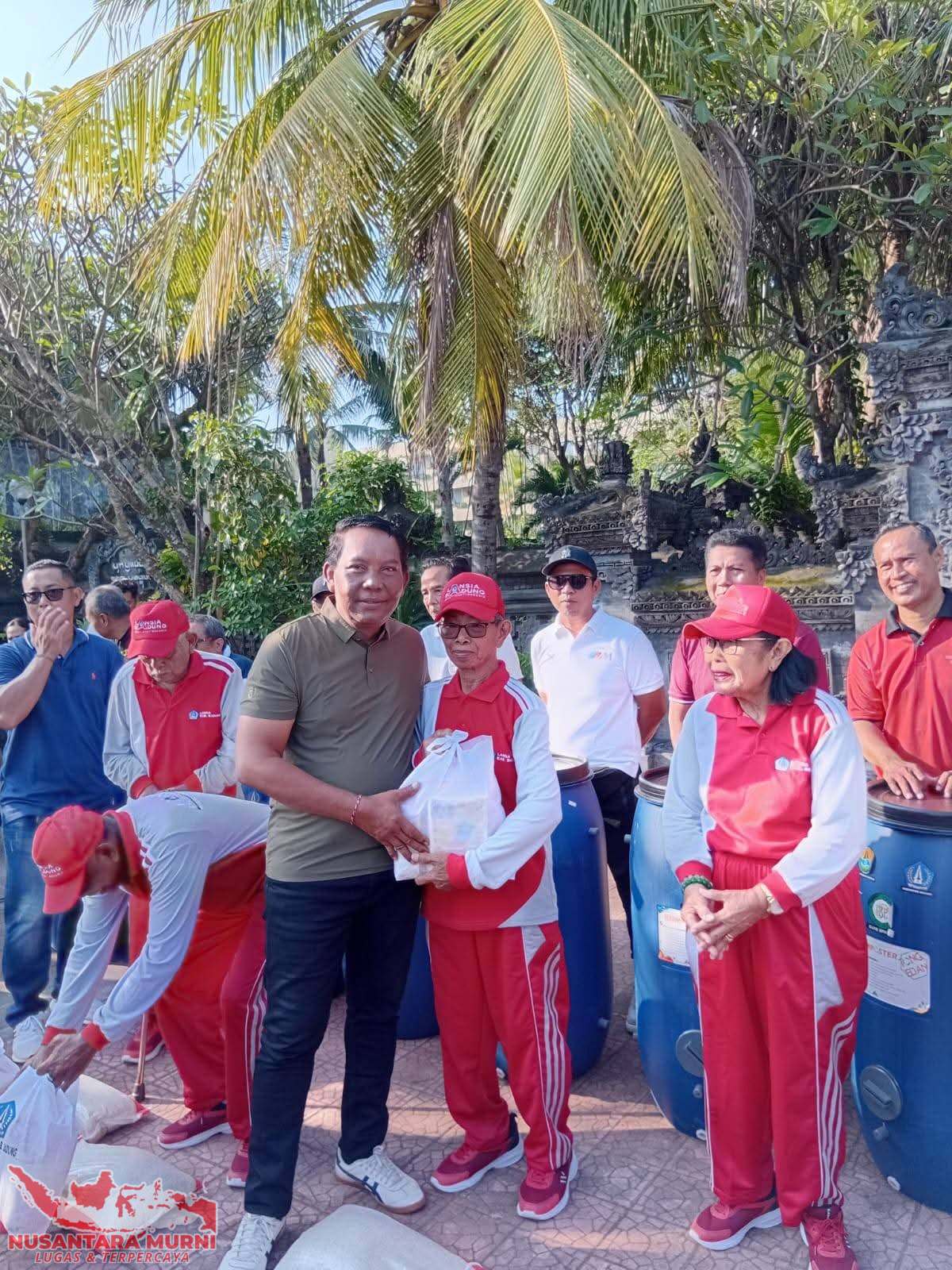 Selanjutnya, dilakukan penyerahan tong komposter kepada 13 Kepala Lingkungan se-Kelurahan Kuta sebagai bentuk dukungan terhadap pengelolaan sampah berbasis sumber. Selain itu, bantuan paket sembako juga disalurkan kepada para lansia dan masyarakat penyandang disabilitas.