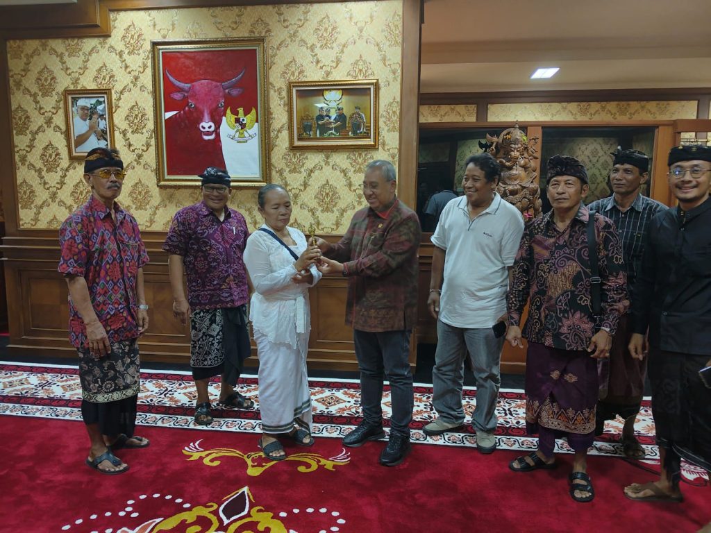 Dalam kesempatan tersebut, Sekretaris DPC PDIP Badung menyerahkan seperangkat Genta atau Bajra kepada seorang Jero Mangku dari Dalau Permai, Kecamatan Kuta Utara.