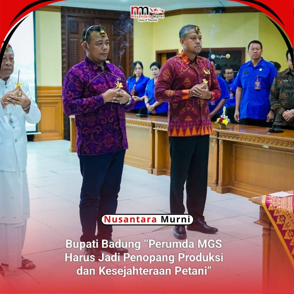 BADUNG,NUSANTARAMURNI.com-Bupati Badung I Wayan Adi Arnawa selaku Kuasa Pemilik Modal (KPM) mengambil sumpah jabatan dan melantik Direksi Perusahaan Umum Daerah (Perumda) Pasar dan Pangan Mangu Giri Sedana (MGS) Kabupaten Badung periode 2026-2031, bertempat di Ruang Kriya Gosana, Puspem Badung, Selasa (27/1). Kompiang Gede Pasek Wedha dilantik sebagai Direktur Utama dan I Made Anjol Wiguna dilantik sebagai Direktur Umum Perumda Pasar dan Pangan MGS Badung.