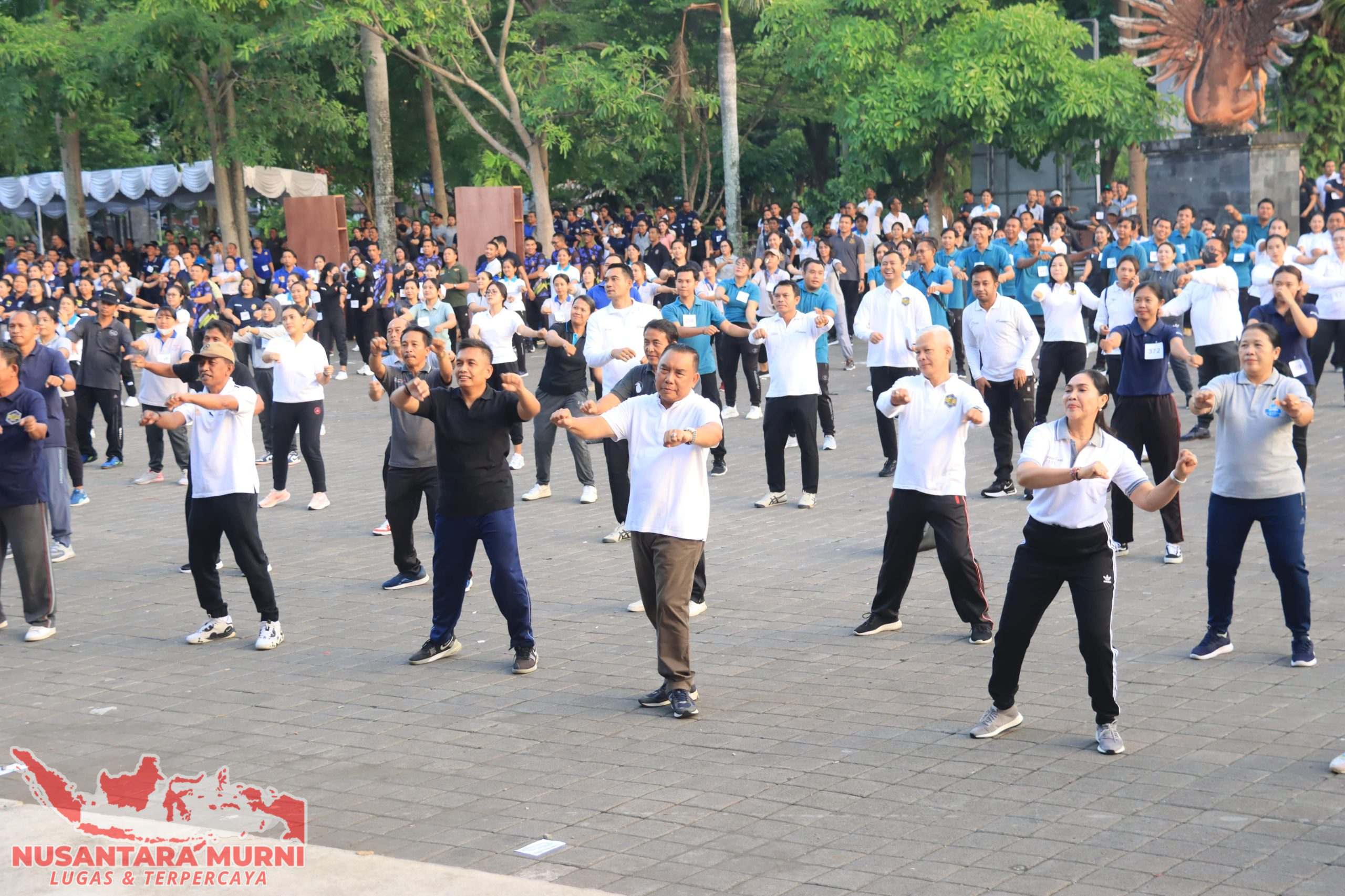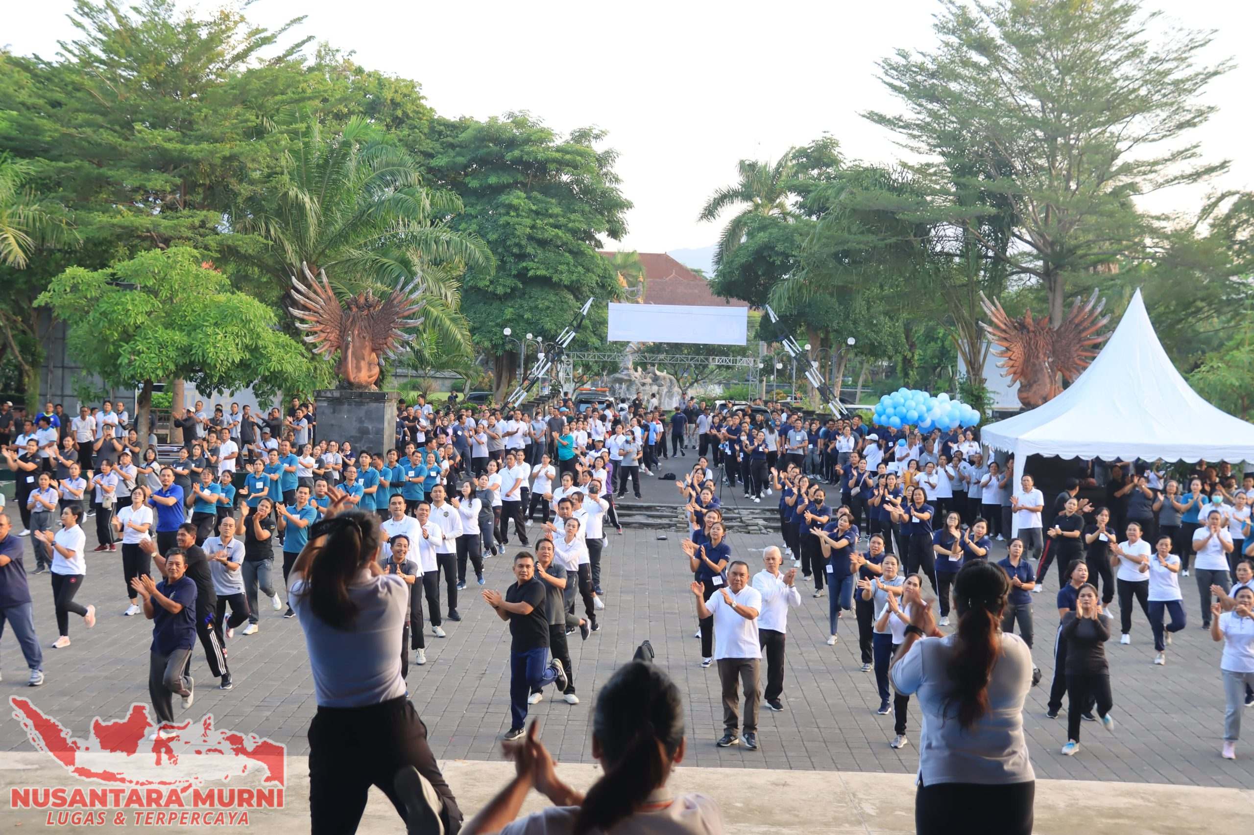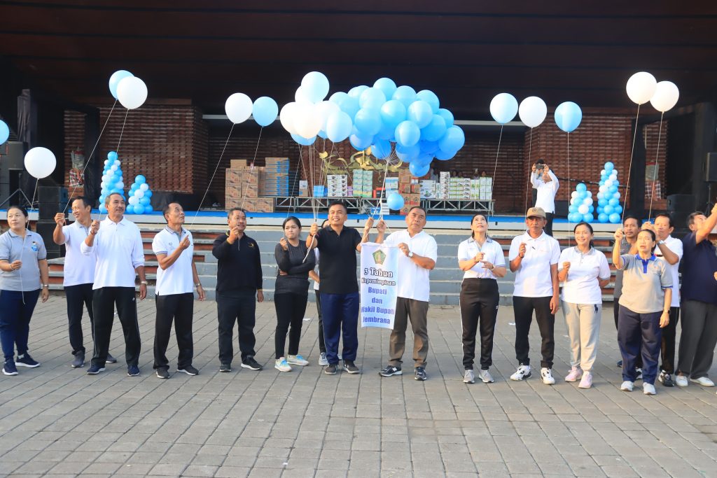 Jembrana,Nusantaramurni.com- Dalam rangka memperingati HUT ke-III Tahun Kepemimpinan Bupati I Nengah Tamba dan Wakil Bupati IGN Patriana Krisna (Ipat), Pemkab Jembrana melalui Dinas Pemberdayaan Masyarakat Desa berkolaborasi dengan TP PKK Jembrana melaksanakan lomba senam Nangun Sat Kerthi Loka Bali yang diikuti oleh seluruh Tenaga Kontrak di Lingkungan Pemkab Jembrana bertempat di Gedung Kesenian Ir. Soekarno, Jumat (1/3).