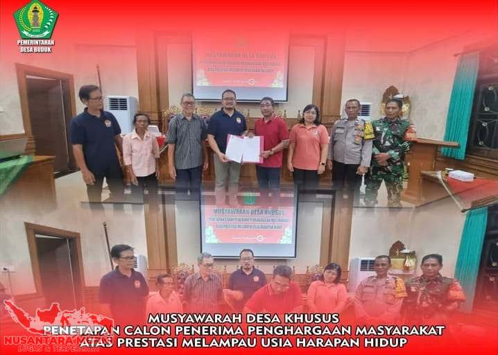 BADUNG,NUSANTARAMURNI.com– Pemerintah Desa Buduk, Kabupaten Badung, telah sukses melaksanakan Musyawarah Desa Khusus (Musdesus) yang berfokus pada penetapan calon penerima penghargaan bagi masyarakat yang berhasil mencapai dan melampaui usia harapan hidup. Acara penting ini diselenggarakan pada Jumat, 12 Desember 2025, bertempat di ruang pertemuan Kantor Perbekel Desa Buduk.