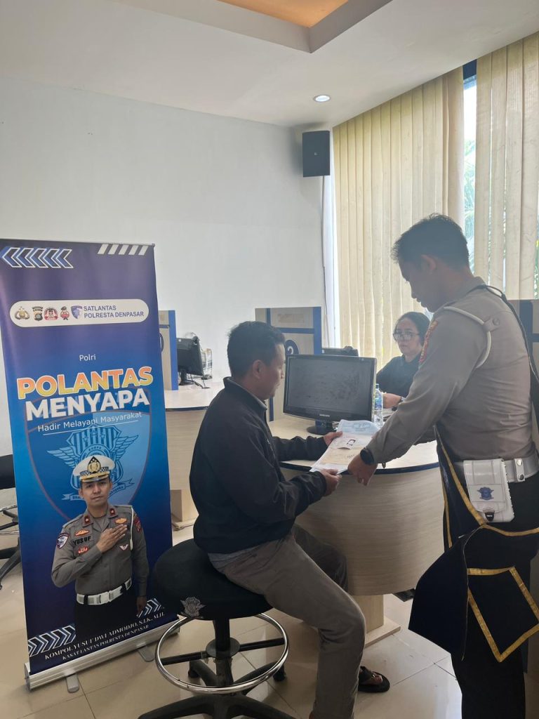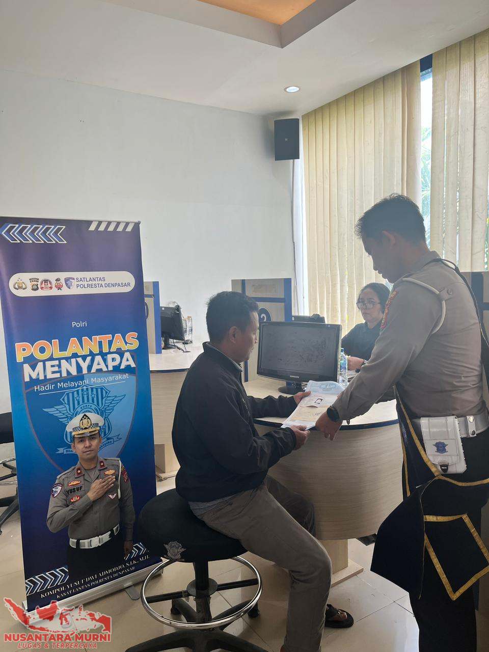 Denpasar,NUSANTARAMURNI.com — Dalam upaya memberikan pelayanan terbaik kepada masyarakat, personel Satuan Lalu Lintas (Satlantas) Polresta Denpasar terus berkomitmen untuk menghadirkan pelayanan yang humanis melalui program “Polantas Menyapa, Hadir dan Melayani Masyarakat” yang dilaksanakan di Satpas SIM Polresta Denpasar.
