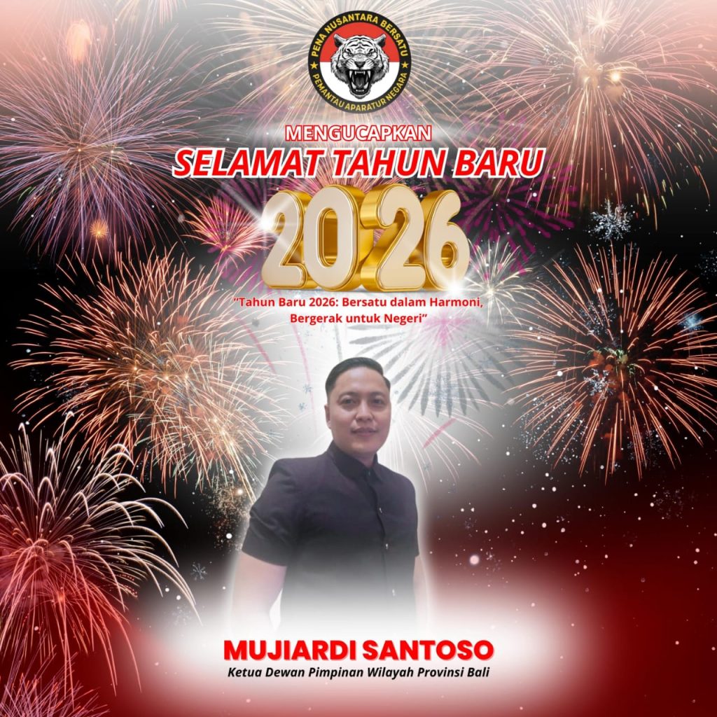 BALI,NUSANTARAMURNI.com– Menyongsong pergantian tahun menuju 2026, Ketua Dewan Pimpinan Wilayah (DPW) Pena Nusantara Bersatu Provinsi Bali, Mujiardi Santoso, menyampaikan pesan penuh optimisme dan harapan bagi seluruh masyarakat. Dalam pernyataan resminya, ia menekankan pentingnya menjaga harmoni dan solidaritas di tengah dinamika bangsa.