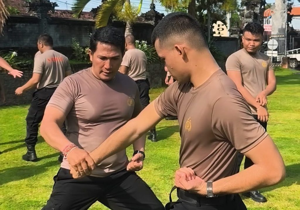 Tingkatkan Kesiapsiagaan, Kasat Samapta Polres Klungkung Pimpin Latihan Bela Diri