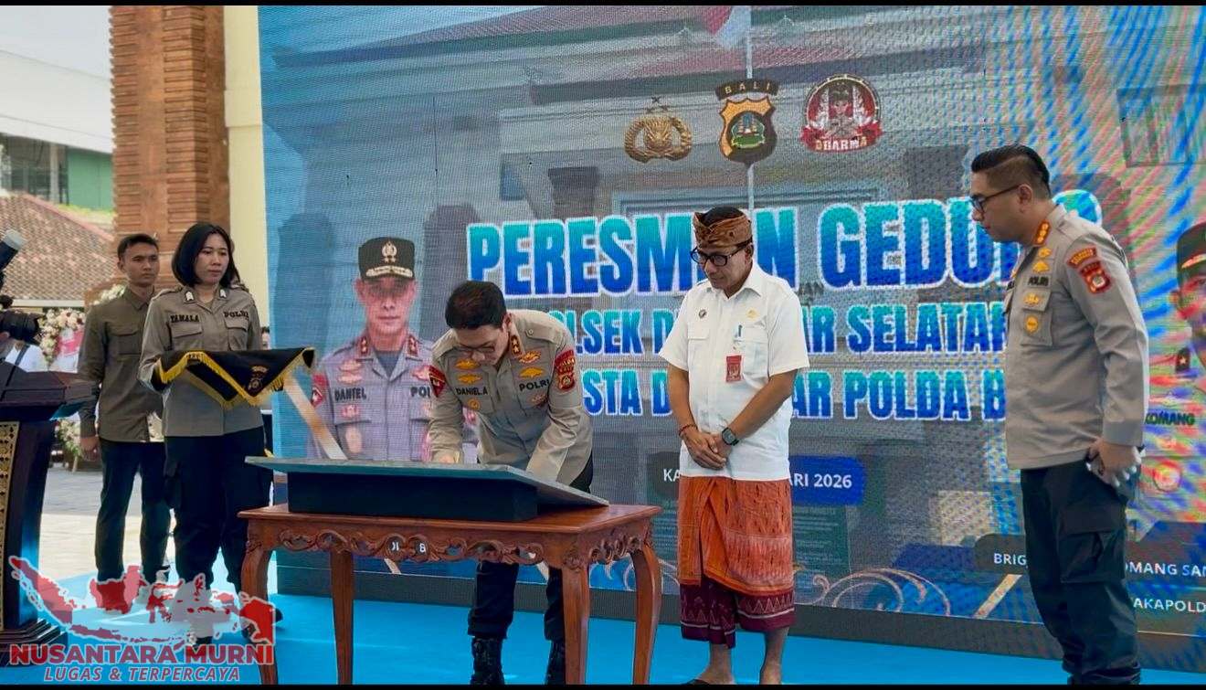 DENPASAR,NUSANTARAMURNI.com– Kapolda Bali, Irjen Pol. Daniel Adityajaya, S.H., S.I.K., M.Si., secara resmi meresmikan gedung baru Mapolsek Denpasar Selatan, Polresta Denpasar, pada Kamis (29/01/2026) pagi. Acara peresmian yang berlangsung khidmat ini dikemas dalam suasana ramah tamah yang mempererat sinergi antara kepolisian, pemerintah daerah, dan unsur TNI.