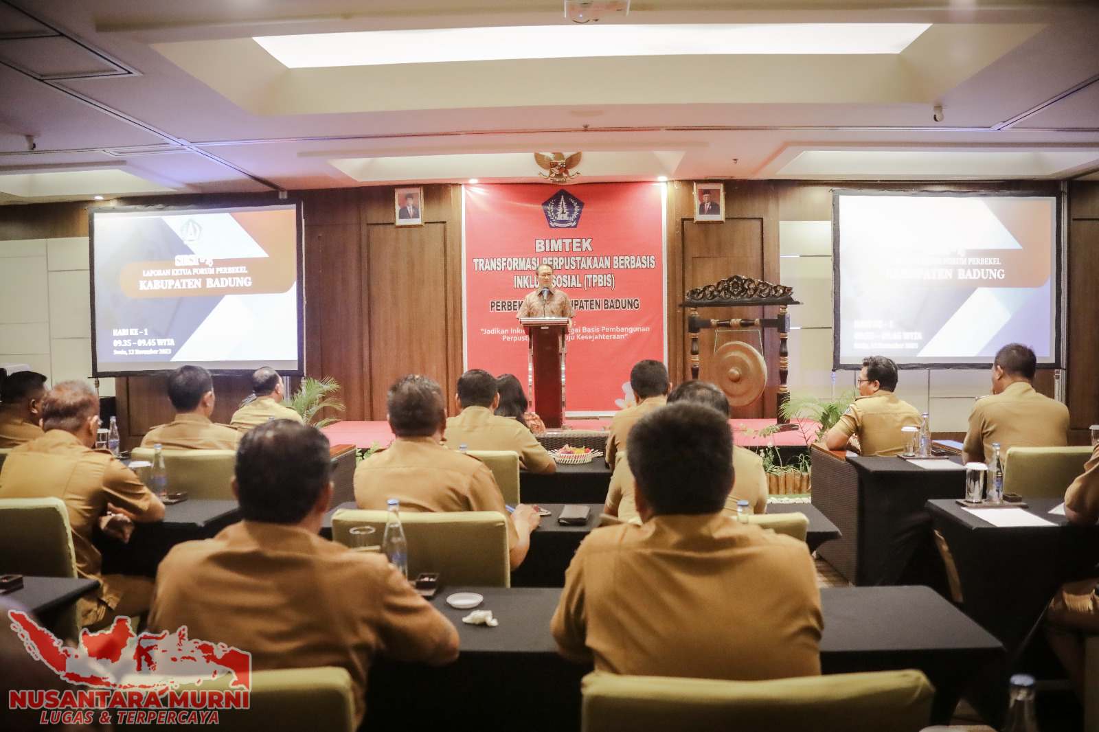 Badung,Nusantaramurni.com-Wakil Bupati Badung Ketut Suiasa membuka acara Bimtek Transformasi Perpustakaan Berbasis Inklusi Sosial (TPBIS) kepada Perbekel se-Kabupaten Badung di Hotel Golden Tulip Jineng Resort, Jalan Sunset Road No. 98 Kuta, Senin (13/11).