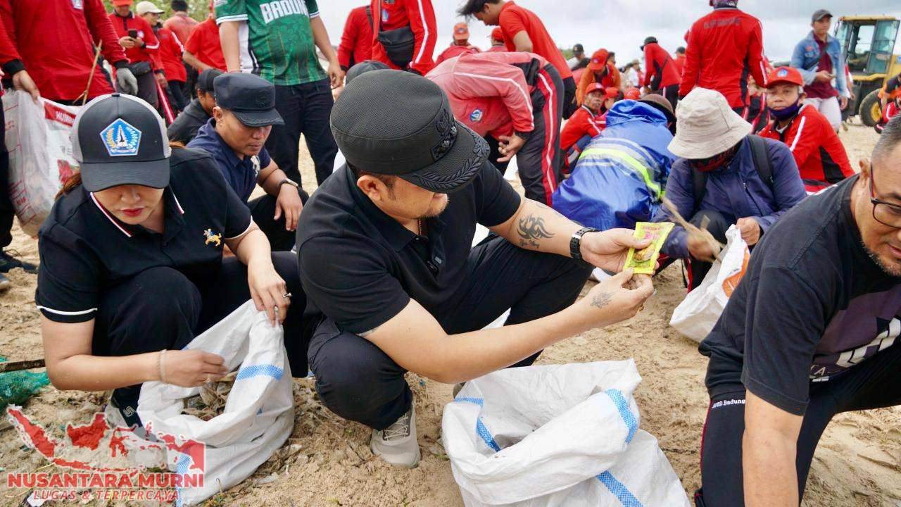 BADUNG,NUSANTARAMURNI.com-Wakil Bupati Badung, Bagus Alit Sucipta bersama Nyonya Yunita Alit Sucipta, memimpin langsung kegiatan aksi Korve bersih-bersih di Pantai Kedonganan, Kecamatan Kuta, Kabupaten Badung, Jumat pagi (13/2). Kegiatan ini merupakan langkah nyata Pemerintah Kabupaten Badung dalam menangani permasalahan sampah pantai yang bersifat musiman dan kerap muncul di sepanjang pesisir Badung, khususnya saat musim angin barat.