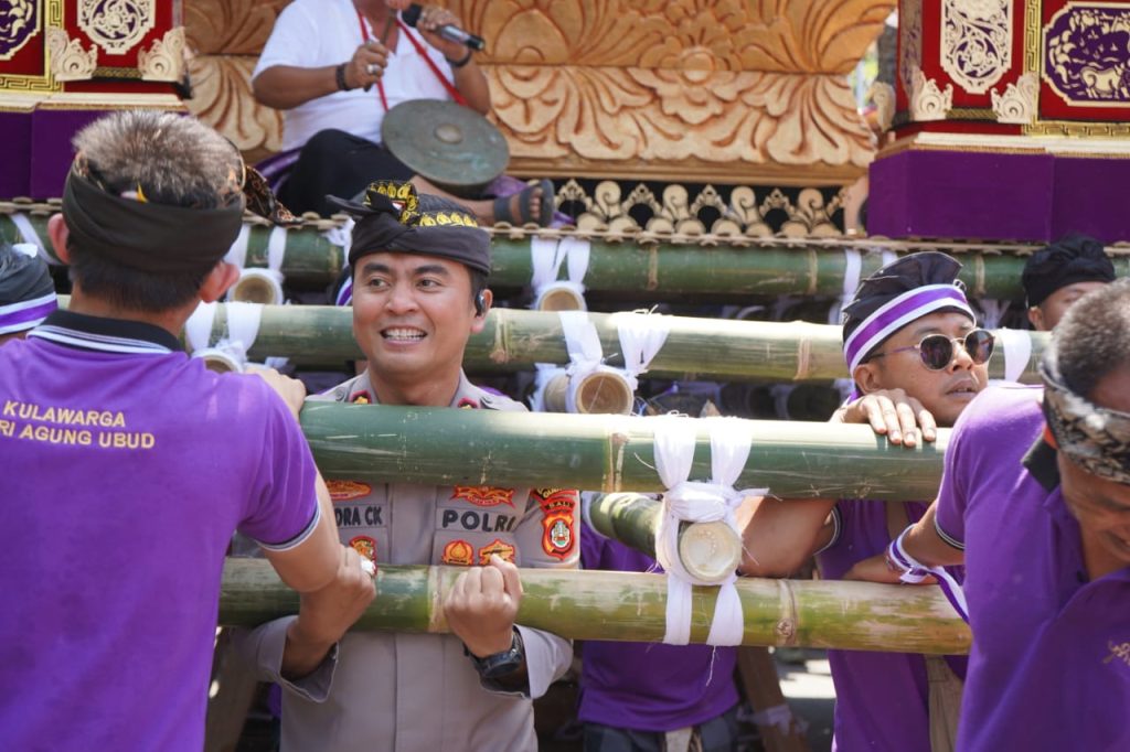 Menariknya, dalam kesempatan tersebut Kapolres Gianyar AKBP Chandra C. Kesuma, S.I.K., M.H., tidak hanya hadir memimpin jalannya pengamanan, tetapi juga ikut bergotong royong mengusung Bade Tumpang Sembilan setinggi 20 meter yang berisi jenazah alm. Cokorda Istri Niti Yadnya. Kehadiran Kapolres di tengah masyarakat mendapat apresiasi dan menambah semangat warga yang secara bergantian mengusung Bade menuju setra.