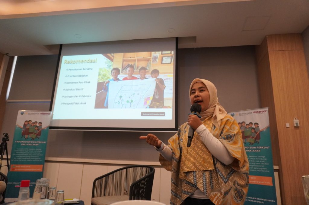 Ibu Suryani dari Save The Children menyoroti bahwa perubahan iklim adalah isu global dengan dampak lokal, di mana anak-anak adalah kelompok rentan sekaligus agen perubahan. Oleh karena itu, kebijakan harus menciptakan ruang partisipasi yang bermakna dan nyaman bagi anak. Hal ini diperkuat oleh Ibu Keumala Dewi dari Pusat Kajian dan Perlindungan Anak (PKPA) yang menyatakan bahwa keadilan ekologi adalah tentang hak anak atas lingkungan dan pangan sehat, di mana mereka memiliki ruang untuk berpendapat. Minimnya pengelolaan Sumber Daya Alam (SDA) berdampak pada minimnya kapasitas, kemampuan, dan peluang untuk meningkatkan hak anak.